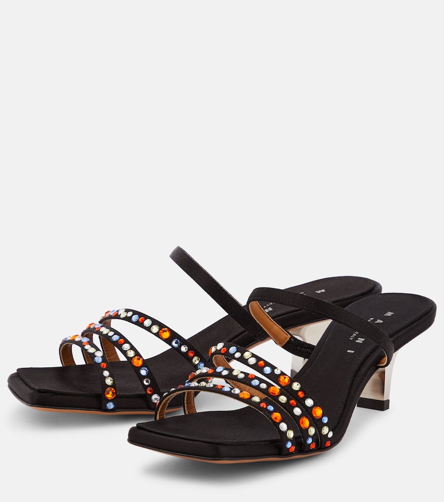 Upper: fabric. Sole: fabric insole, rubber sole. Comes with a box. Toe shape: square open toe. Designer color name: Black. Made in Italy. Shop the latest Marni Mid-Heel Sandals for women now.