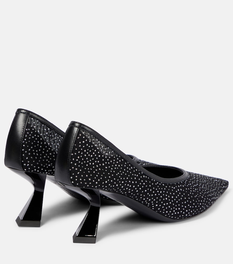 Upper: fabric. Lining: fabric. Sole: leather insole and sole. Toe shape: pointed toe. Made in Italy. Designer color name: Glitter Black. Trim: leather. Comes with dust bag. Comes with a box. Shop the latest Nensi Dojaka Mid-Heel Pumps for women now.