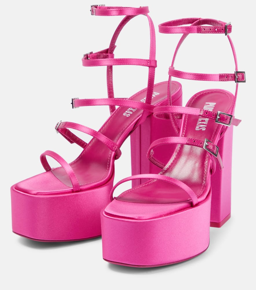 Toe shape: round open toe. Lining: leather. Upper: fabric. Sole: leather insole and sole. Closure: buckle-fastening ankle strap. Designer color name: Flamingo. Comes with a box. Made in Italy. Comes with dust bag. Shop the latest Paris Texas High-Heel Sandals for women now.