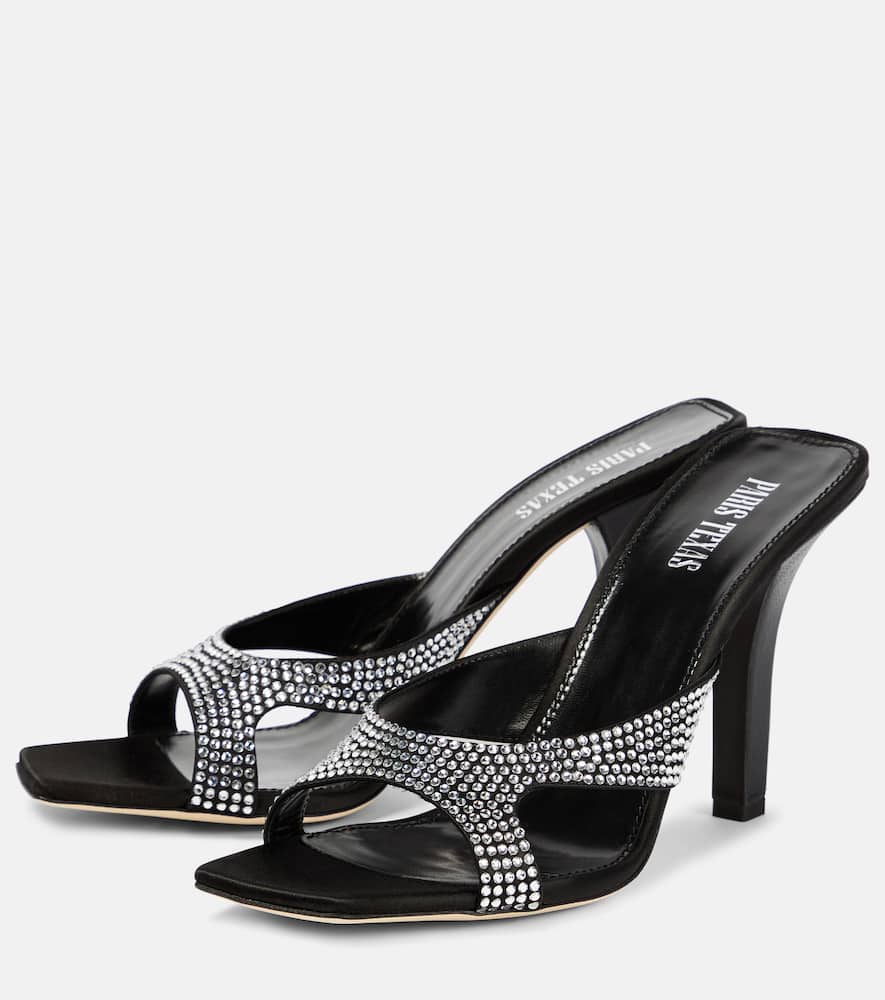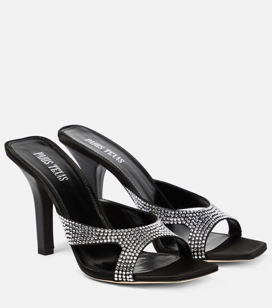 Lining: leather. Upper: fabric. Sole: leather insole and sole. Toe shape: square open toe. Comes with a box. Designer color name: Black Diamond. Made in Italy. Comes with dust bag. Shop the latest Paris Texas High-Heel Sandals for women now.