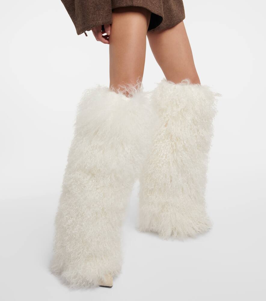 Upper: shearling. Lining: leather. Sole: leather insole and sole. Toe shape: pointed toe. Made in Italy. Includes: shoe box, dust bag. Designer color name: White. Shop the latest Paris Texas High-Heel Boots for women now.