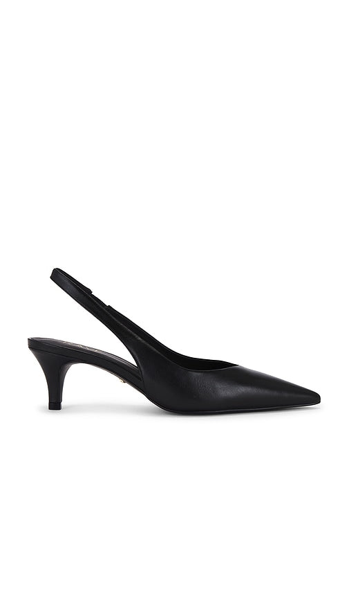 Leather upper with manmade sole. Made in Brazil. Sling-back styling. Leather footbed and lining. Pointed toe. Approx 57mm/ 2.25 inch heel. RAYE-WZ2821. RYSH1872 H24. Inspired by the word Reina, the Spanish word for queen, Raye is the queen bee shoe brand that will surely capture your heart. With an extensive assortment of silhouettes from heels to boots and sandals to flats, Raye has that perfect something for everyone. Color: Black. Shop Black Sling Back Heels for women and the latest RAYE shoes now.