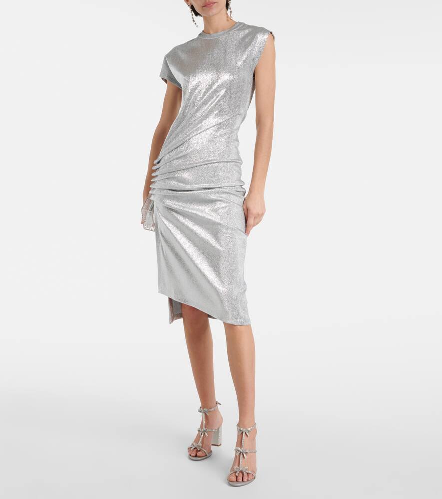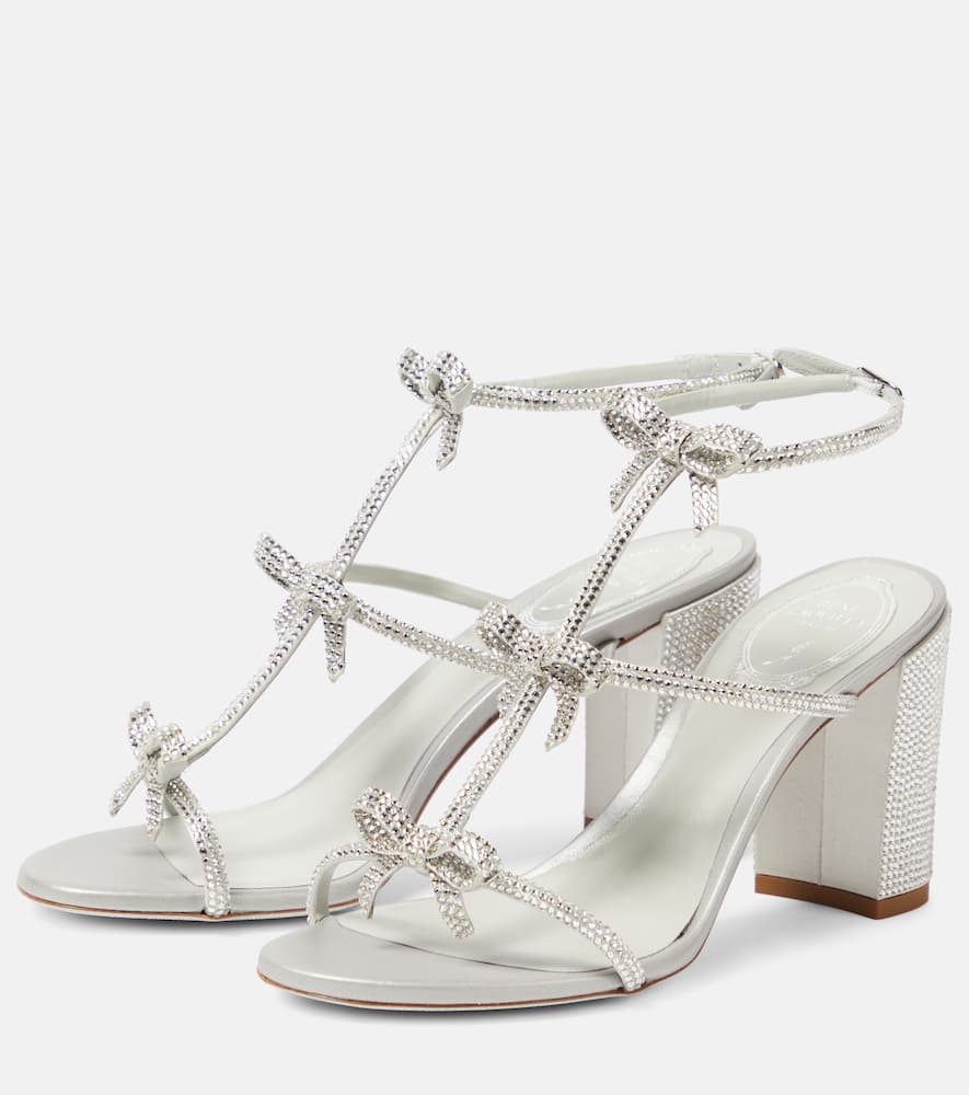 Upper: fabric. Lining: leather. Sole: leather insole and sole. Toe shape: almond open toe. Made in Italy. Includes: shoe box, dust bag. Designer color name: Grey Satin/C.Silver. Closure: buckle-fastening ankle strap. Shop the latest Rene Caovilla High-Heel Sandals for women now.
