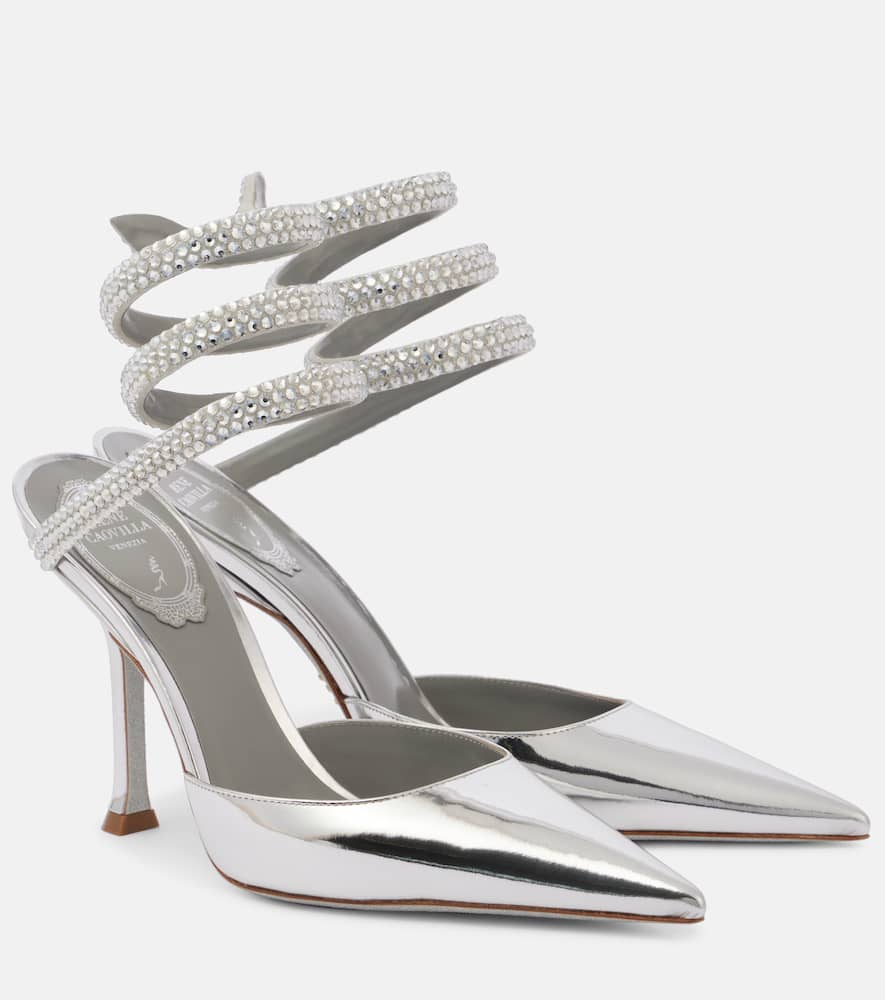 Rene Caovilla Cleo embellished metallic leather pumps