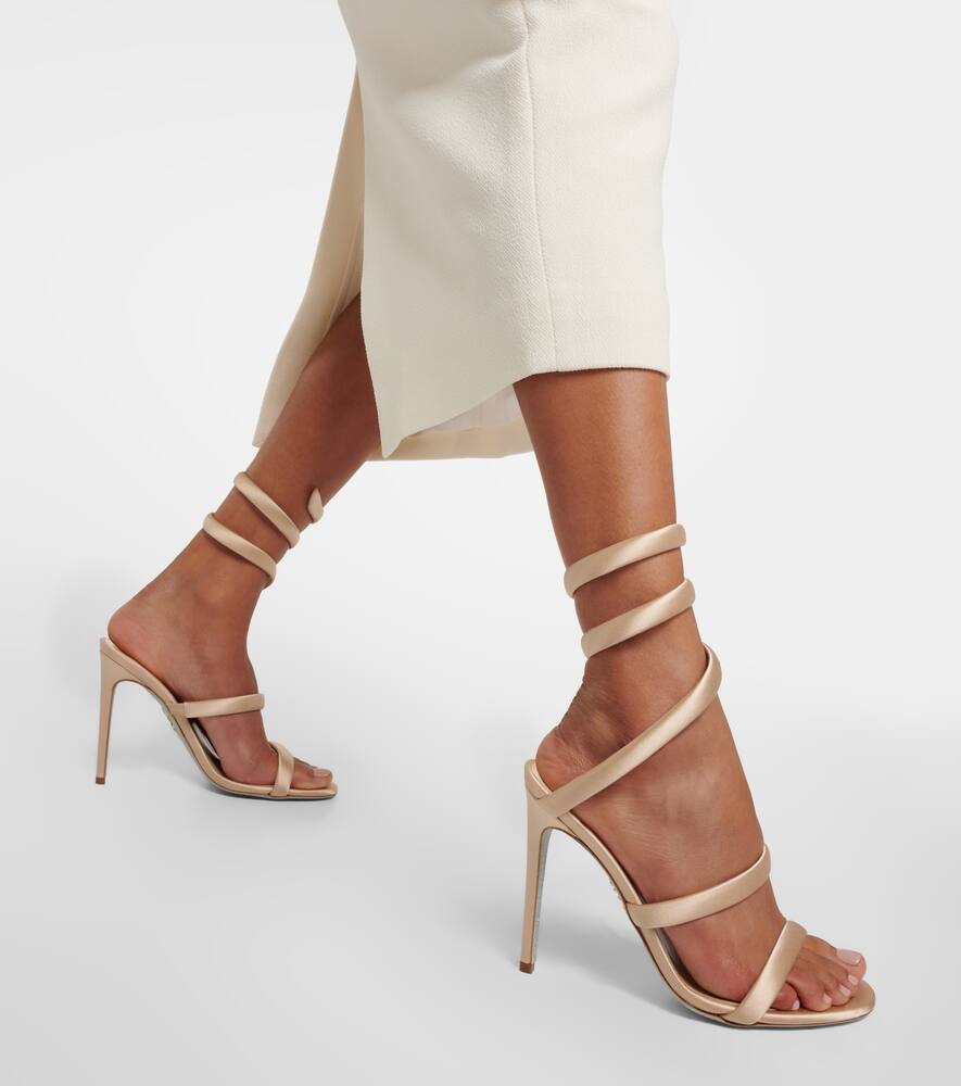 Upper: fabric. Lining: fabric. Sole: leather insole and sole. Toe shape: round open toe. Made in Italy. Includes: shoe box, dust bag. Designer color name: Beige Satin. Shop the latest Rene Caovilla High-Heel Sandals for women now.