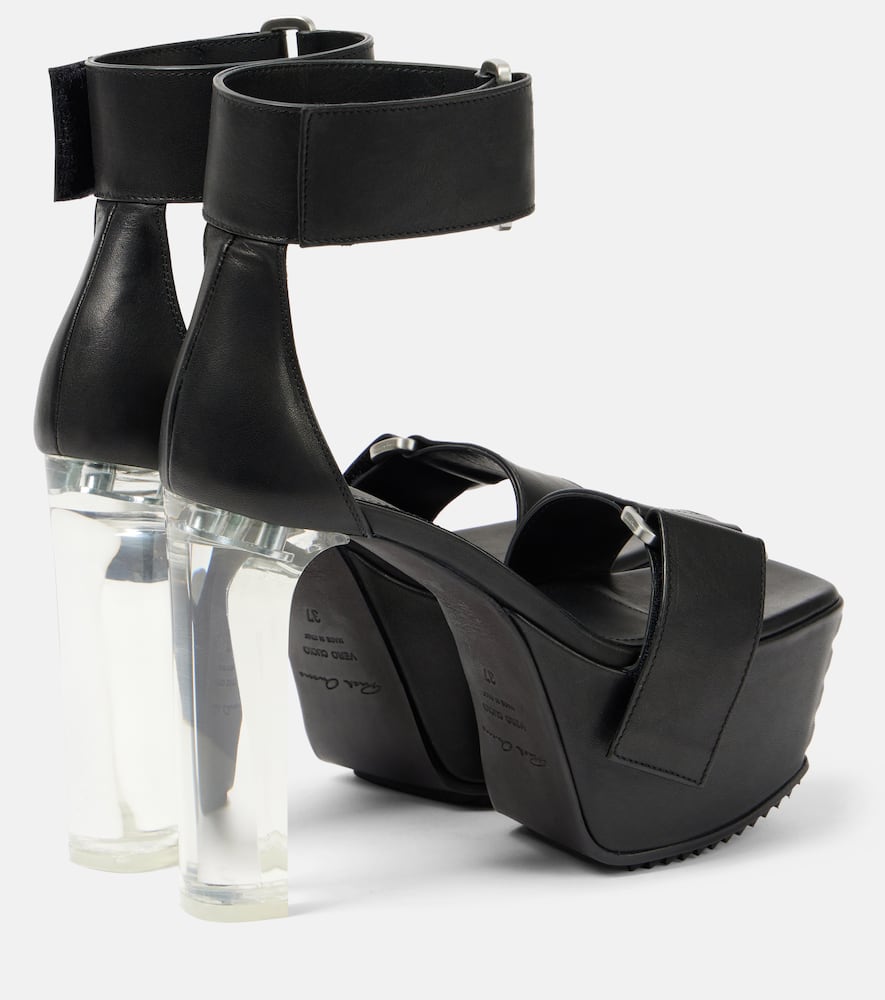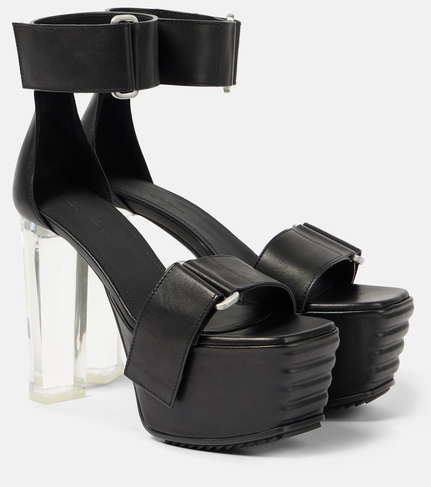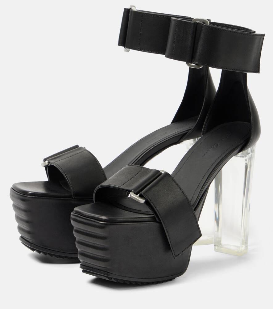 Upper: leather, rubber. Lining: leather. Sole: leather insole, rubber sole. Toe shape: square open toe. Made in Italy. Includes: shoe box. Designer color name: Black. Shop the latest Rick Owens High-Heel Sandals for women now.