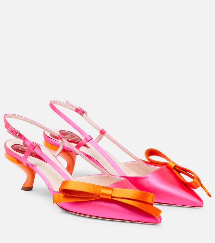 Roger Vivier Virgule bow-embellished satin slingback pumps