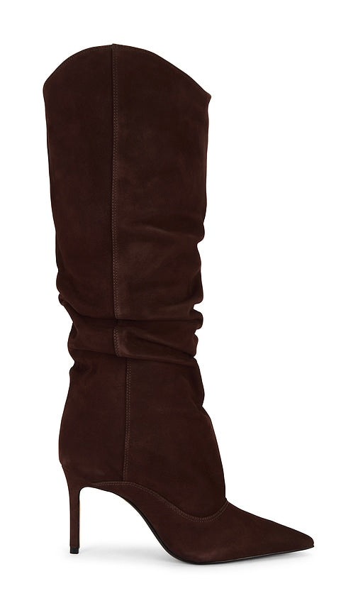 Suede upper with leather lining and sole. Pull-on styling. Pointed toe with stiletto heel. Approx 76mm/ 3 inch heel Approx 375mm/ 14.75 inch shaft Opening measures approx 10.20. SCHU-WZ1755. S2205900350001. Founded in 1995 by Alexandre Birman, Schutz has redefined attainable luxury, trend-forward footwear. With each new release, Schutz delivers the most of-the-moment collections that are the hero pieces around which entire outfits are built. Defined by confident, bold, and purpose-driven attitude, Schutz shoes lead the conversation, delivering fashion at your feet, one head-turning pair at a time. In her Schutz, she can conquer anything Color: Root Brown. Shop Root Brown Heeled Boots for women and the latest Schutz shoes now.