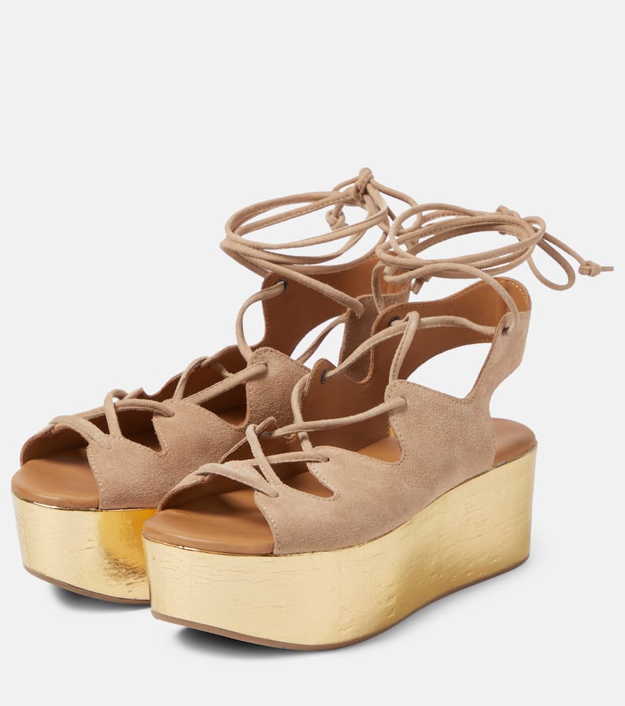 Upper: leather. Lining: leather. Sole: leather insole, rubber sole. Toe shape: round open toe. Made in Spain. Includes: dust bag, shoe box. Designer color name: Powder. Closure: lace-up. Shop the latest See By Chloe Mid-Heel Sandals for women now.