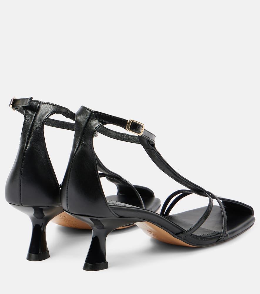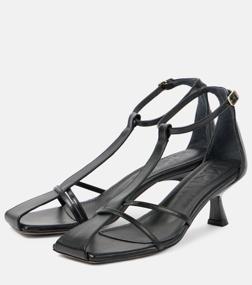 Upper: leather. Lining: leather. Sole: leather insole, rubber sole. Toe shape: square open toe. Made in Spain. Includes: shoe box, dust bags. Designer color name: Black. Shop the latest Souliers Martinez Mid-Heel Sandals for women now.