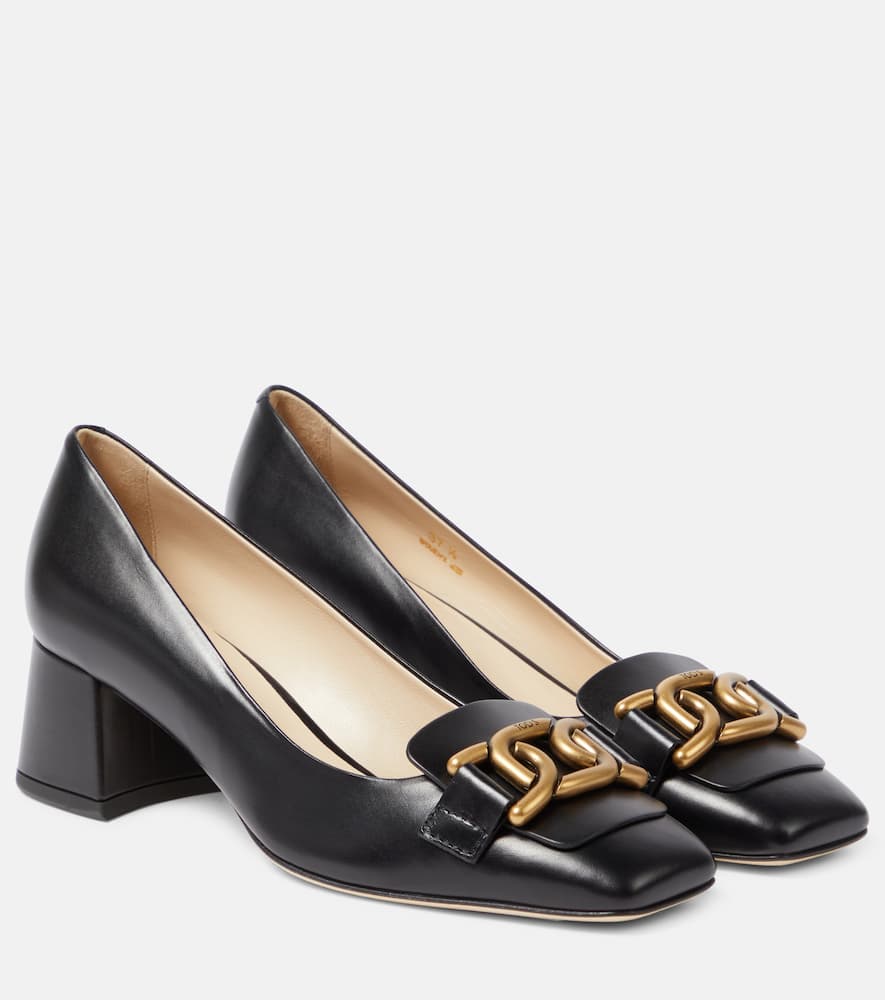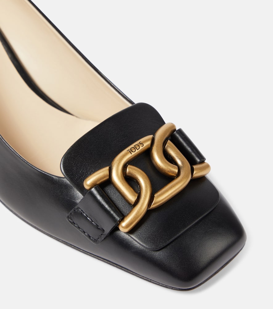 Upper: leather. Lining: leather. Sole: leather insole and sole. Toe shape: square toe. Made in Italy. Includes: dust bag, shoe box. Designer color name: Nero. Shop the latest Tod's Mid-Heel Pumps for women now.