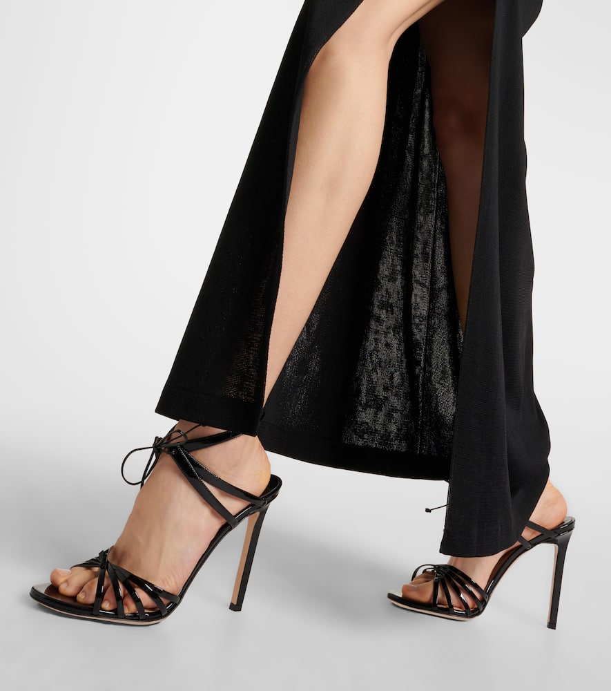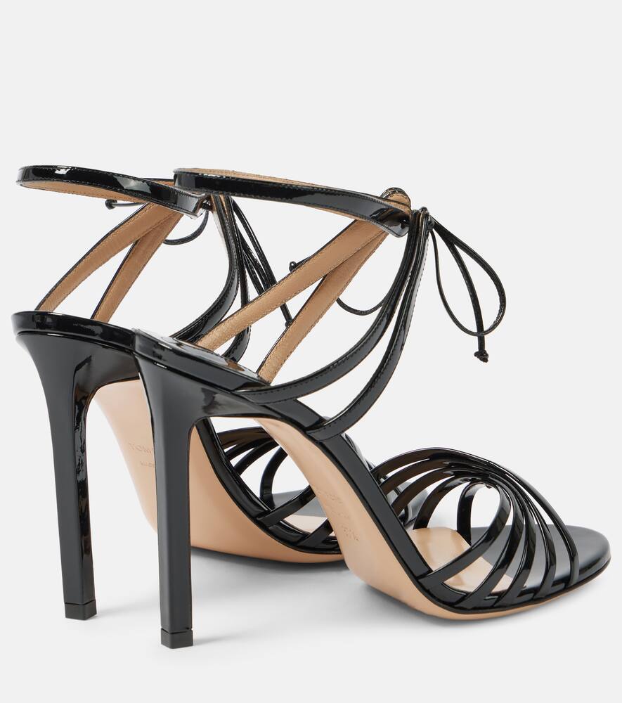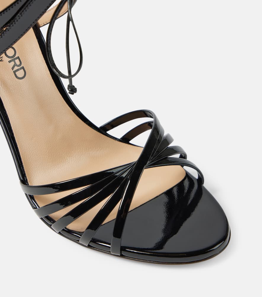 Upper: leather. Lining: leather. Sole: leather insole and sole. Toe shape: round open toe. Made in Italy. Includes: dust bag, shoe box. Designer color name: Black. Closure: lace-up. Comes with extra heel tips. Shop the latest Tom Ford High-Heel Sandals for women now.