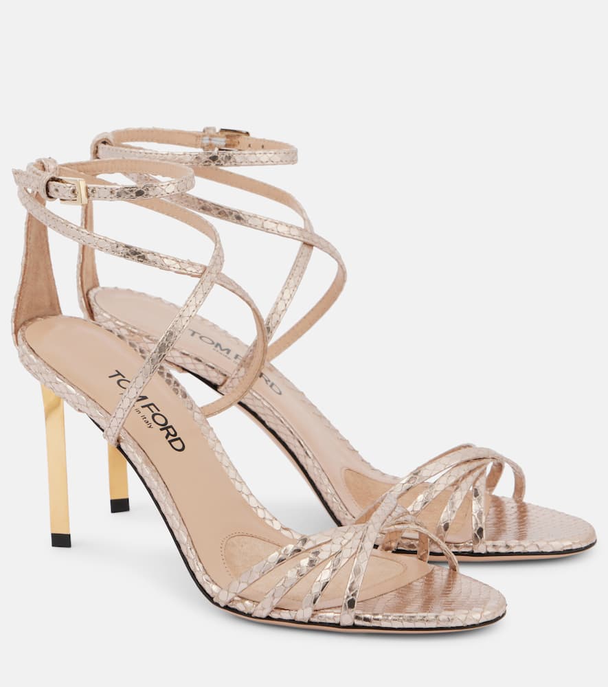 Upper: leather. Lining: leather. Sole: leather insole and sole. Toe shape: almond open toe. Made in Italy. Includes: shoe box. Designer color name: Champagne. Shop the latest Tom Ford High-Heel Sandals for women now.