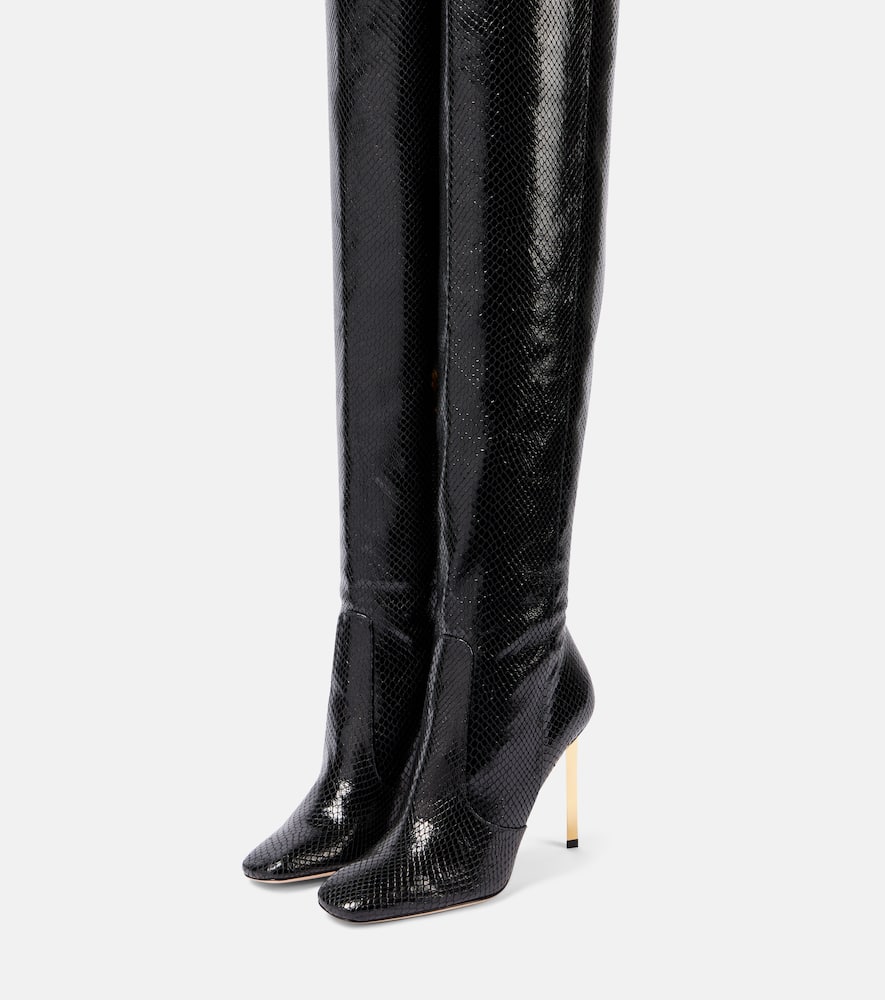 Upper: leather. Lining: leather. Sole: leather insole and sole. Toe shape: pointed toe. Made in Italy. Includes: dust bags, shoe box. Designer color name: Black. Shop the latest Tom Ford High-Heel Boots for women now.
