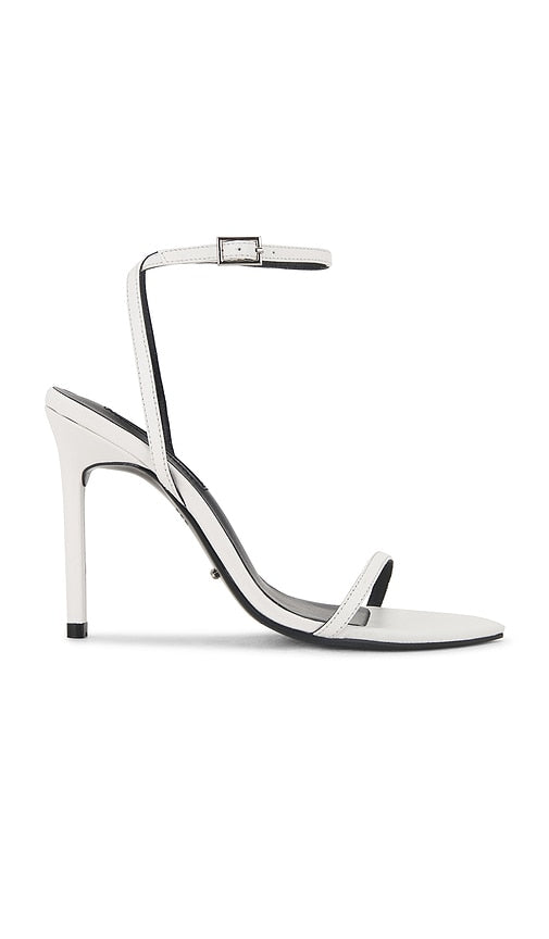 Leather upper with manmade sole. Made in China. Ankle buckle closure. Leather footbed and lining. Pointed toe with stiletto heel. Approx 100mm/ 4 inch heel. TONR-WZ944. MICKY. Based out of Australia, the Tony Bianco brand embraces a mix of the contemporary, the classic, and the cool. Their signature can be seen in the use of high quality materials and a keen eye for detail that is used to create on-trend pieces that will survive the test of time. Color: White. Shop White Open Toe Heels for women and the latest Tony Bianco shoes now.