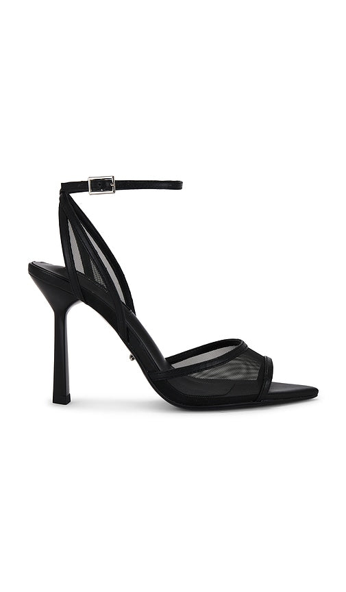 Mesh upper with leather trim and manmade sole. Made in China. Ankle buckle closure. Leather footbed. Pointed toe with stiletto heel. Approx 100mm/ 4 inch heel. TONR-WZ949. MILEY. Based out of Australia, the Tony Bianco brand embraces a mix of the contemporary, the classic, and the cool. Their signature can be seen in the use of high quality materials and a keen eye for detail that is used to create on-trend pieces that will survive the test of time. Color: Black. Shop Black Open Toe Heels for women and the latest Tony Bianco shoes now.