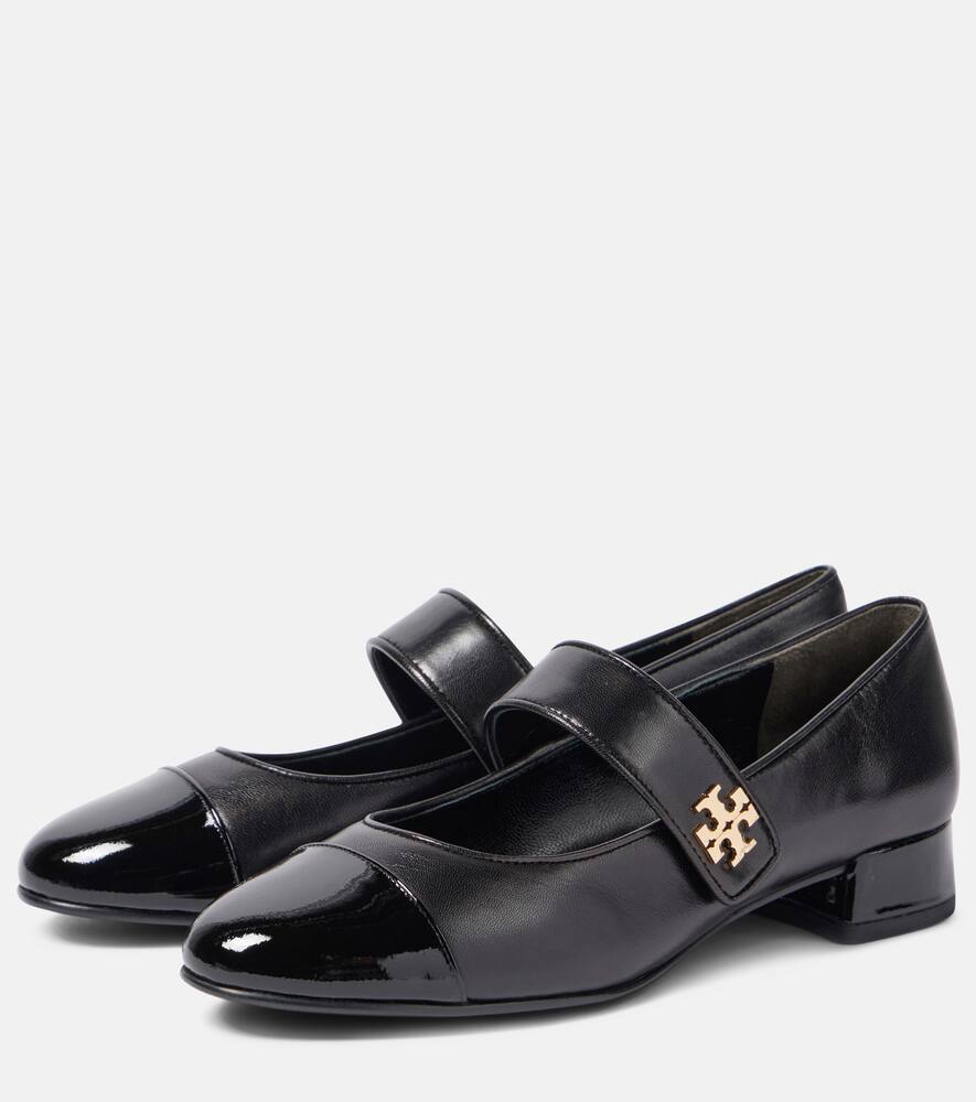 Upper: goat leather. Lining: leather. Sole: leather insole and sole. Toe shape: round toe. Made in Vietnam. Includes: shoe box, dust bag. Designer color name: Perfect Black / Perfect Black. Trim: calf leather. Shop the latest Tory Burch Mid-Heel Pumps for women now.
