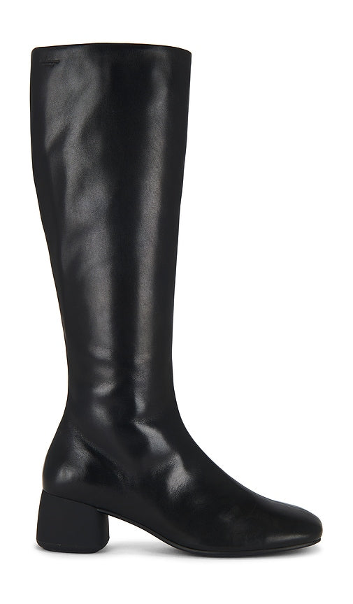 Leather upper with manmade sole. Side zip closure. Cushioned leather footbed with textile lining. Block heel. Rounded toe. Approx 50mm/ 2 inch heel Approx 393mm/ 15 inch shaft Shaft measures approx 22 in circumference. VAGR-WZ69. 5856-001-20. Color: Black. Shop Black Heeled Boots for women and the latest Vagabond Shoemakers shoes now.