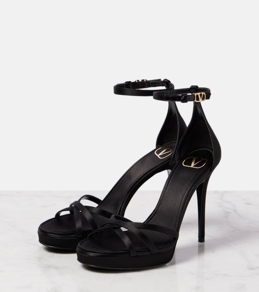 Upper: fabric. Lining: leather. Sole: fabric insole, rubber sole. Toe shape: almond open toe. Made in Italy. Includes: shoe box, dust bags. Designer color name: Nero. Closure: buckle-fastening ankle strap. Hardware color: rose gold. Shop the latest Valentino Garavani High-Heel Sandals for women now.