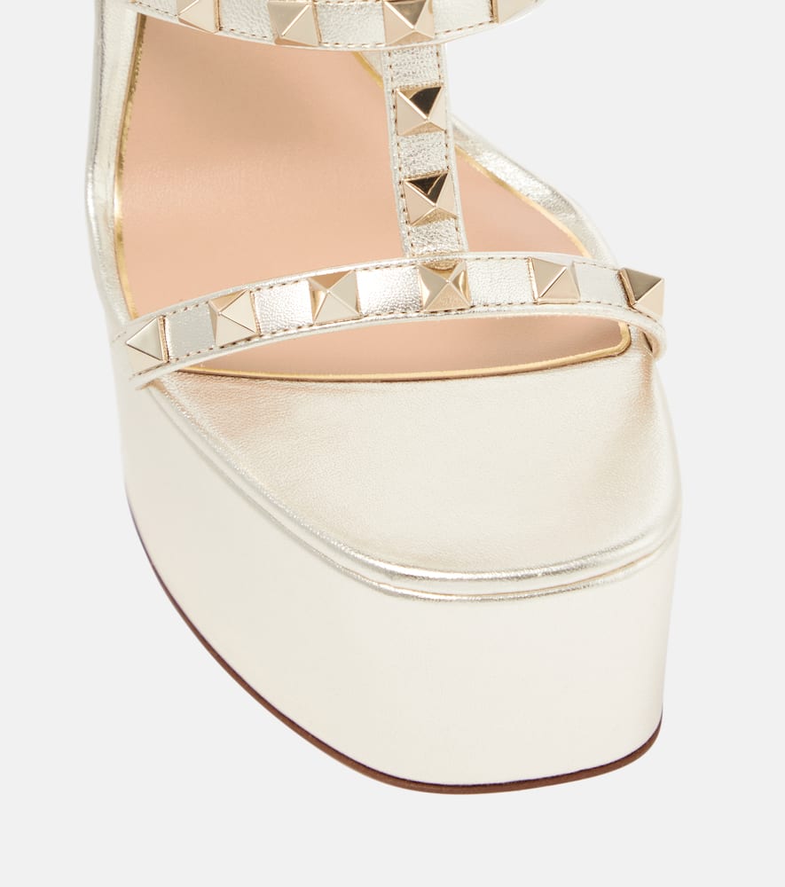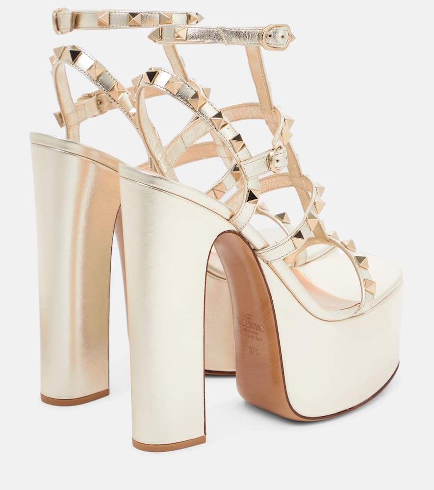 Lining: leather. Upper: lamb leather. Sole: leather insole and sole. Comes with a box. Made in Italy. Designer color name: Platino. Trim: platinum-plated studs. Toe shape: square open toe. Comes with dust bags. Closure: buckle-fastening ankle strap. Shop the latest Valentino Garavani High-Heel Sandals for women now.