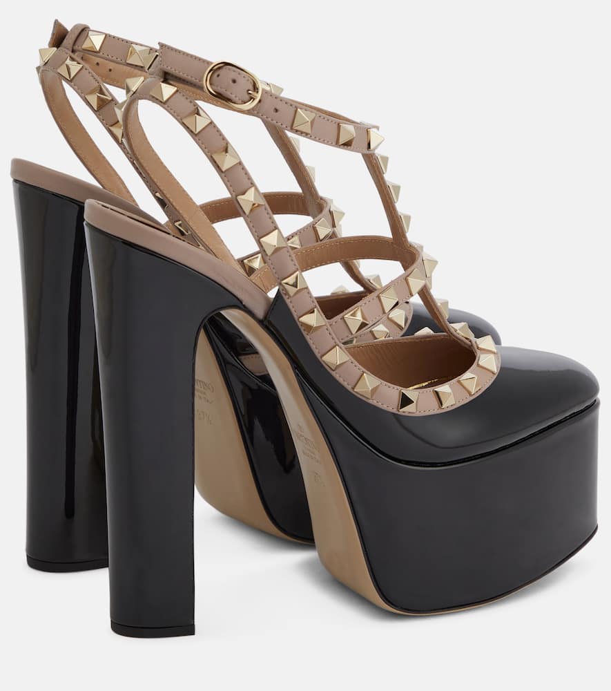 Lining: leather. Sole: leather insole and sole. Toe shape: almond toe. Comes with a box. Made in Italy. Designer color name: Nero/Poudre. Upper: calf leather. Trim: platinum-plated studs. Comes with dust bags. Closure: buckle-fastening ankle strap. Shop the latest Valentino Garavani High-Heel Pumps for women now.