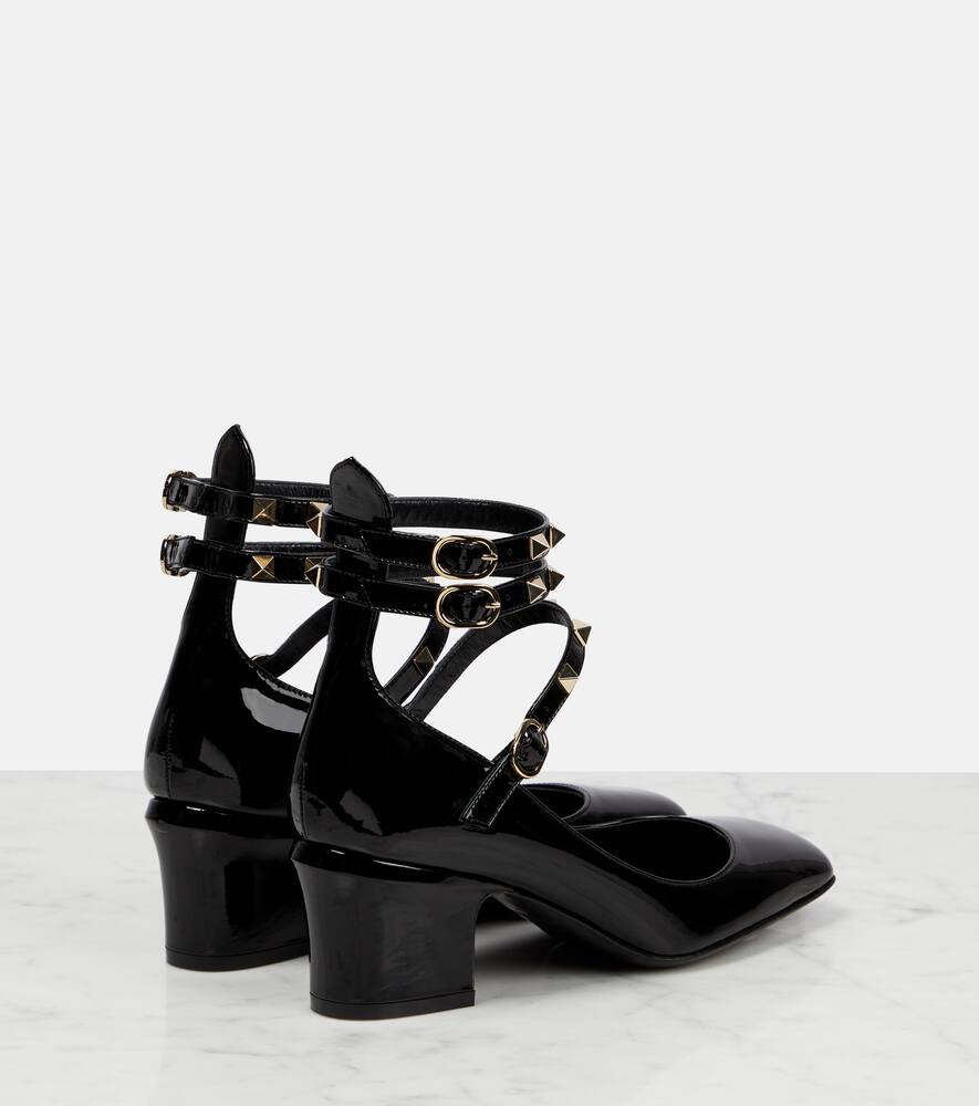 Upper: leather. Lining: leather. Sole: leather insole, leather and rubber sole. Toe shape: square toe. Made in Italy. Includes: dust bags, shoe box. Designer color name: Nero. Closure: buckle-fastening ankle strap. Hardware color: gold. Shop the latest Valentino Garavani Mid-Heel Sandals for women now.