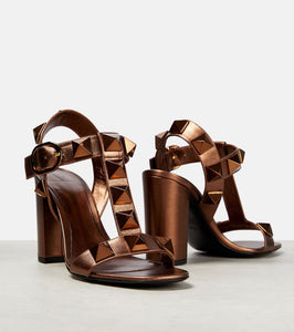 Upper: leather. Lining: leather. Sole: leather insole and sole. Toe shape: round open toe. Made in Italy. Includes: dust bags, shoe box. Designer color name: Bronzo. Closure: buckle-fastening ankle strap. Hardware color: bronze. Shop the latest Valentino Garavani High-Heel Sandals for women now.