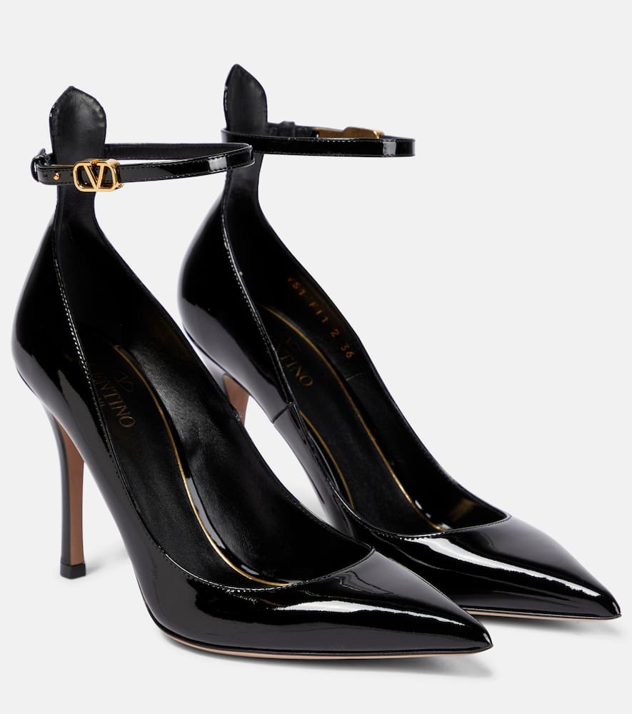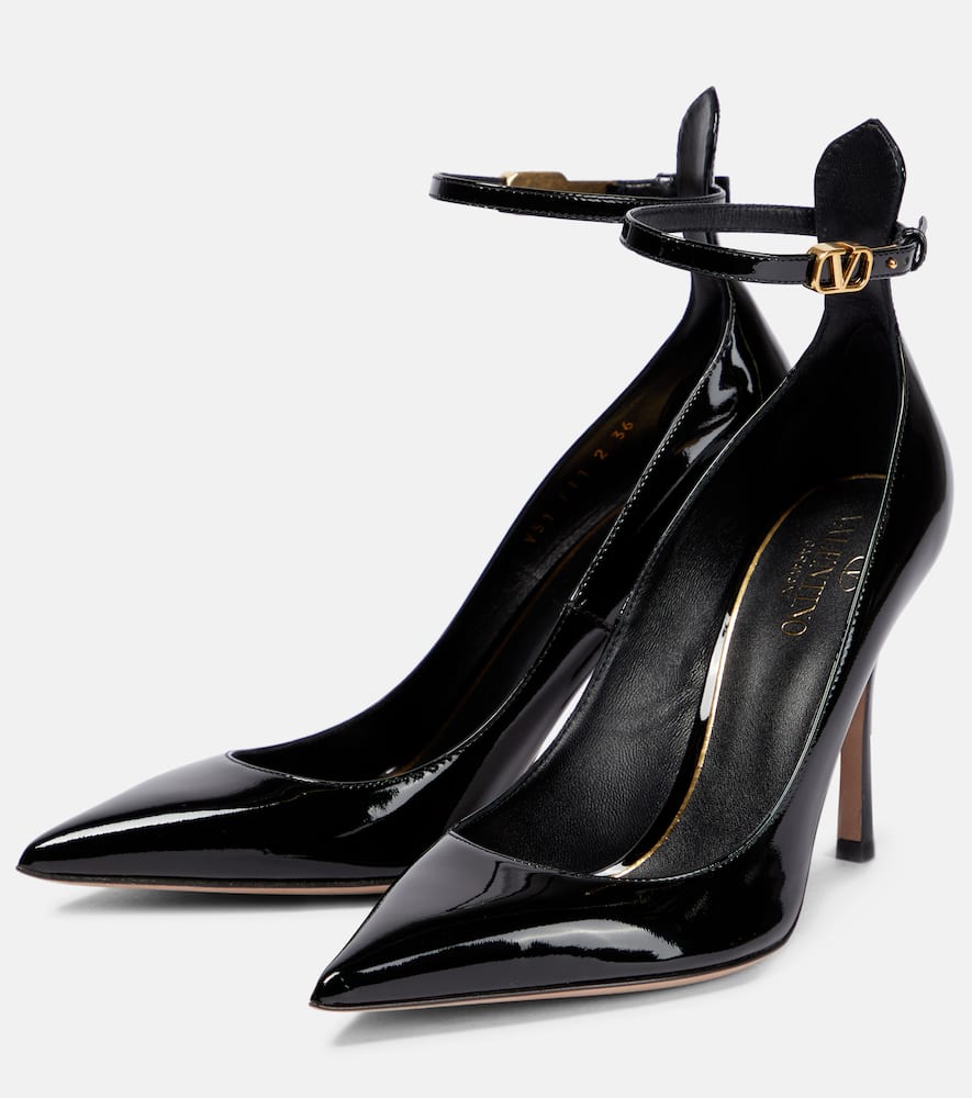 Upper: calf leather. Lining: leather. Sole: leather insole and sole. Toe shape: pointed toe. Made in Italy. Includes: dust bag, shoe box. Designer color name: Nero. Closure: buckle-fastening ankle strap. Hardware color: gold. Shop the latest Valentino Garavani High-Heel Pumps for women now.
