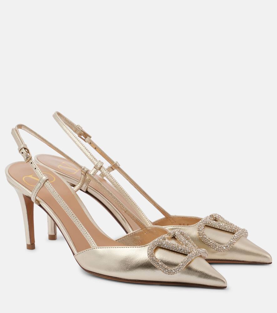 Valentino Garavani VLogo Signature metallic leather slingback pumps