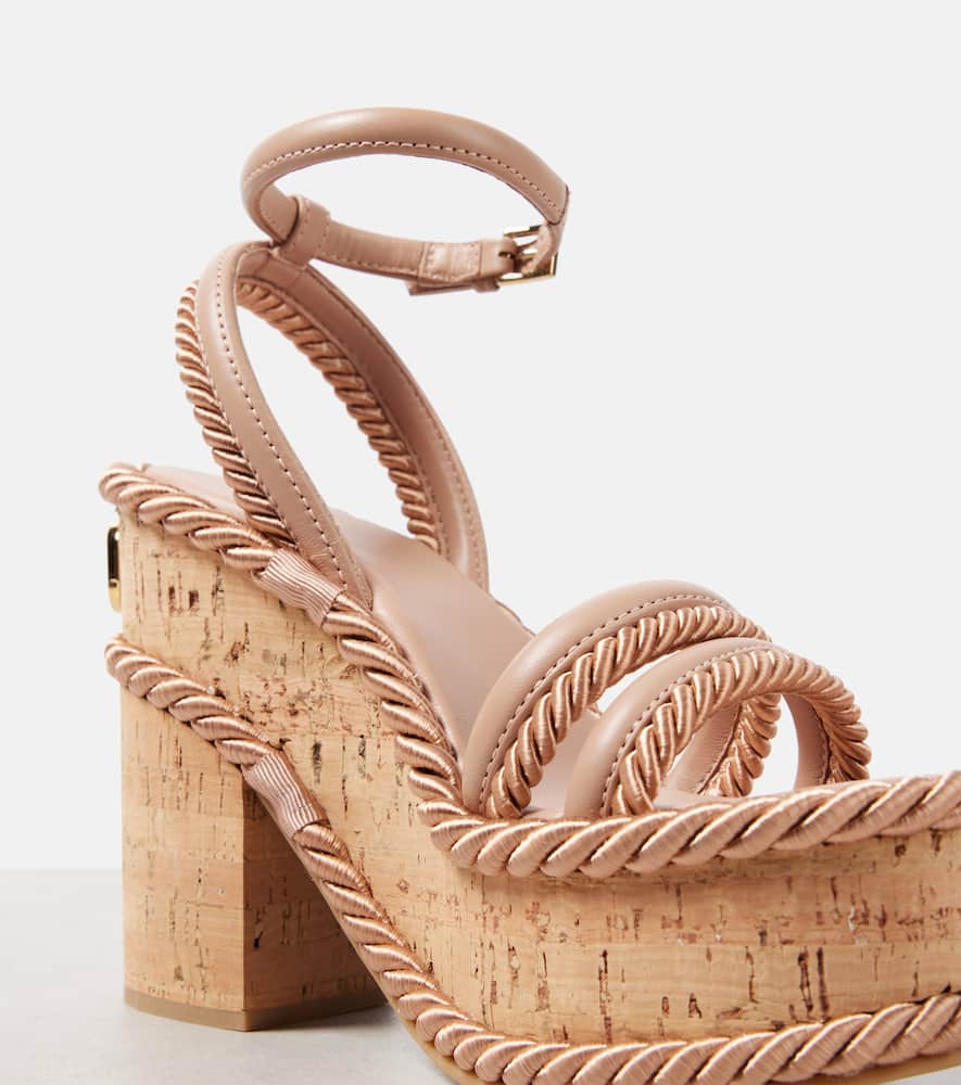 Upper: leather. Lining: leather. Sole: leather insole, rubber sole. Toe shape: round open toe. Made in Spain. Includes: dust bags, shoe box. Designer color name: Rose Cannelle. Trim: fabric, cork. Closure: buckle-fastening ankle strap. Hardware color: rose gold. Shop the latest Valentino Garavani High-Heel Sandals for women now.