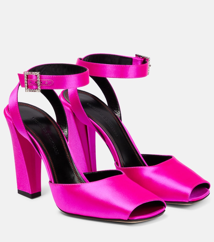 Lining: leather. Upper: fabric. Closure: buckle fastening. Sole: leather insole and sole. Toe shape: square toe. Designer color name: Fuchsia. Comes with a box. Made in Italy. Comes with dust bag. Shop the latest Victoria Beckham High-Heel Sandals for women now.