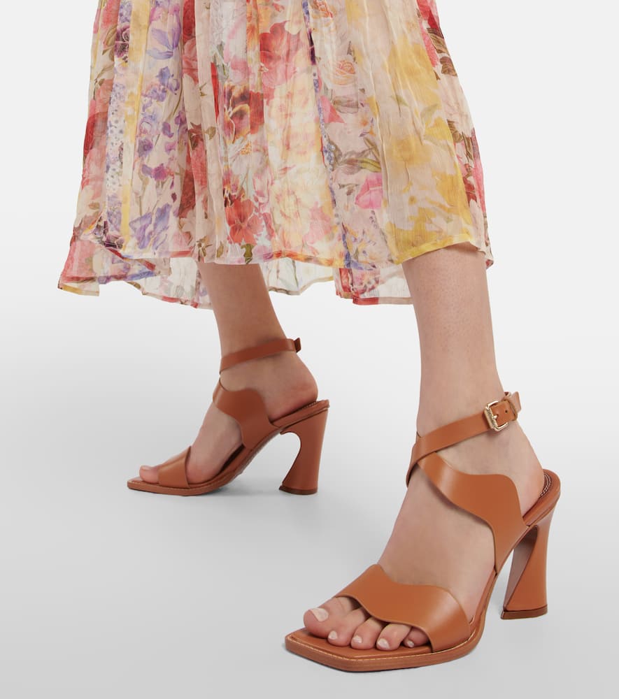 Lining: leather. Sole: leather insole and sole. Upper: leather. Toe shape: square open toe. Comes with a box. Designer color name: Tan. Closure: buckle-fastening ankle strap. Made in Italy. Comes with dust bag. Shop the latest Zimmermann High-Heel Sandals for women now.