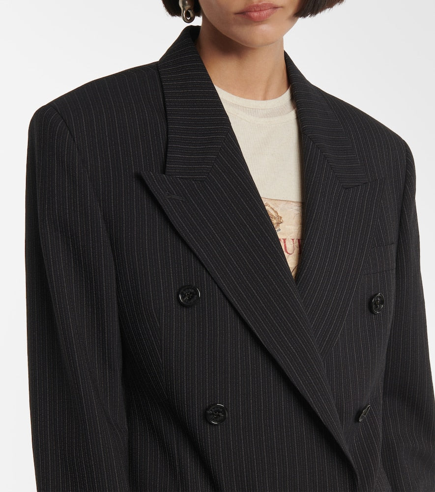 Material: 74% wool, 24% cotton, 2% elastane. Care instructions: dry clean. Made in Portugal. Designer color name: Black. Closure: double-breasted. Pockets: flap pockets, breast pocket. Shoulder pads. Buttoned cuffs. Lining: 50% acetate, 50% viscose. Fully lined. Shop the latest Acne Studios Blazers.