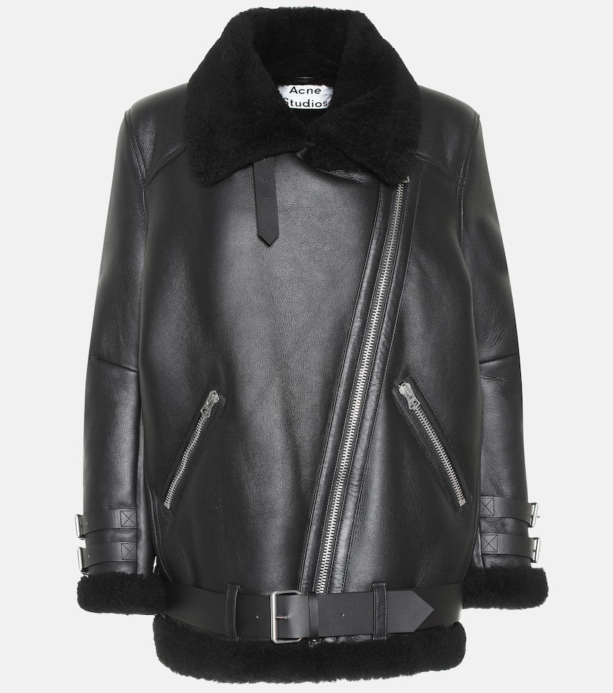 Material III: 100% calf leather. Made in Italy. Detachable belt, Belt loops. Designer color name: Black/Black. Material II: 100% lamb leather. Material: 100% shearling. Closure: zipped front. Cuff tab. Care instructions: do not wash. Pockets: zipped pockets. Shop the latest Acne Studios Shearling Jackets.