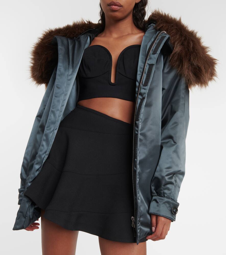 Material: 100% polyamide. Care instructions: dry clean. Made in Italy. Designer color name: Lichen. Material II: 93% modacrylic, 7% polyester. Closure: VELCRO® fastenings, concealed zipper. Pockets: side slit pockets, flap pockets, snap-buttoned pockets. Detachable collar. Shop the latest Alaia Puffer & Down Jackets.