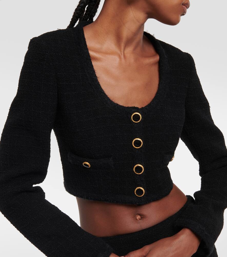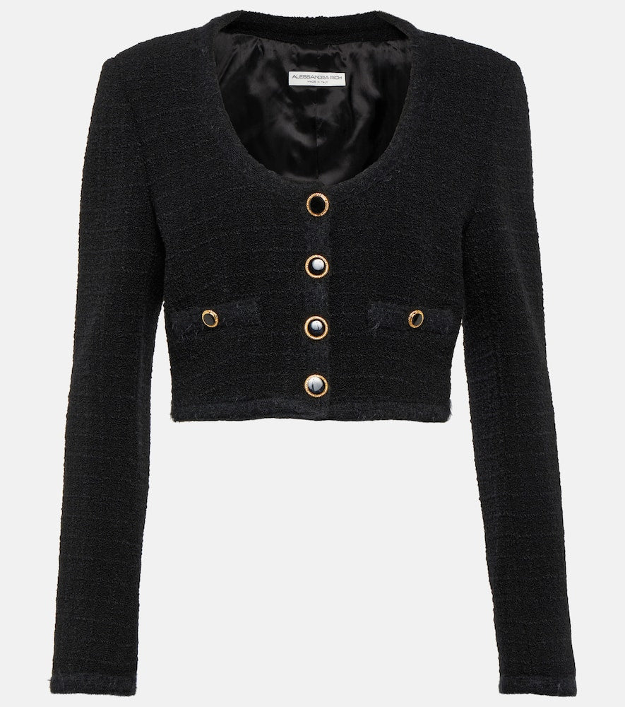 Made in Italy. Material II: 66% polyamide, 21% acrylic, 13% mohair. Lining: 100% viscose. Designer color name: Black. Pockets: flap pockets. Material: 84% wool, 16% polyamide. Care instructions: specialist clean. Buttoned cuffs. Closure: buttoned front. Shop the latest Alessandra Rich Tweed Jackets.