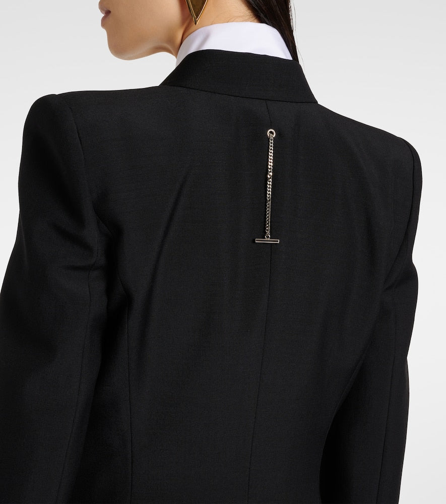 Material: 75% wool, 25% mohair. Care instructions: dry clean. Made in Italy. Designer color name: Black. Details: 100% silk. Lining: 100% viscose. Closure: double-breasted (six buttons). Shop the latest Alexander McQueen Blazers.