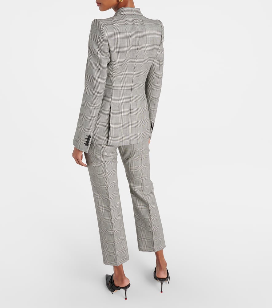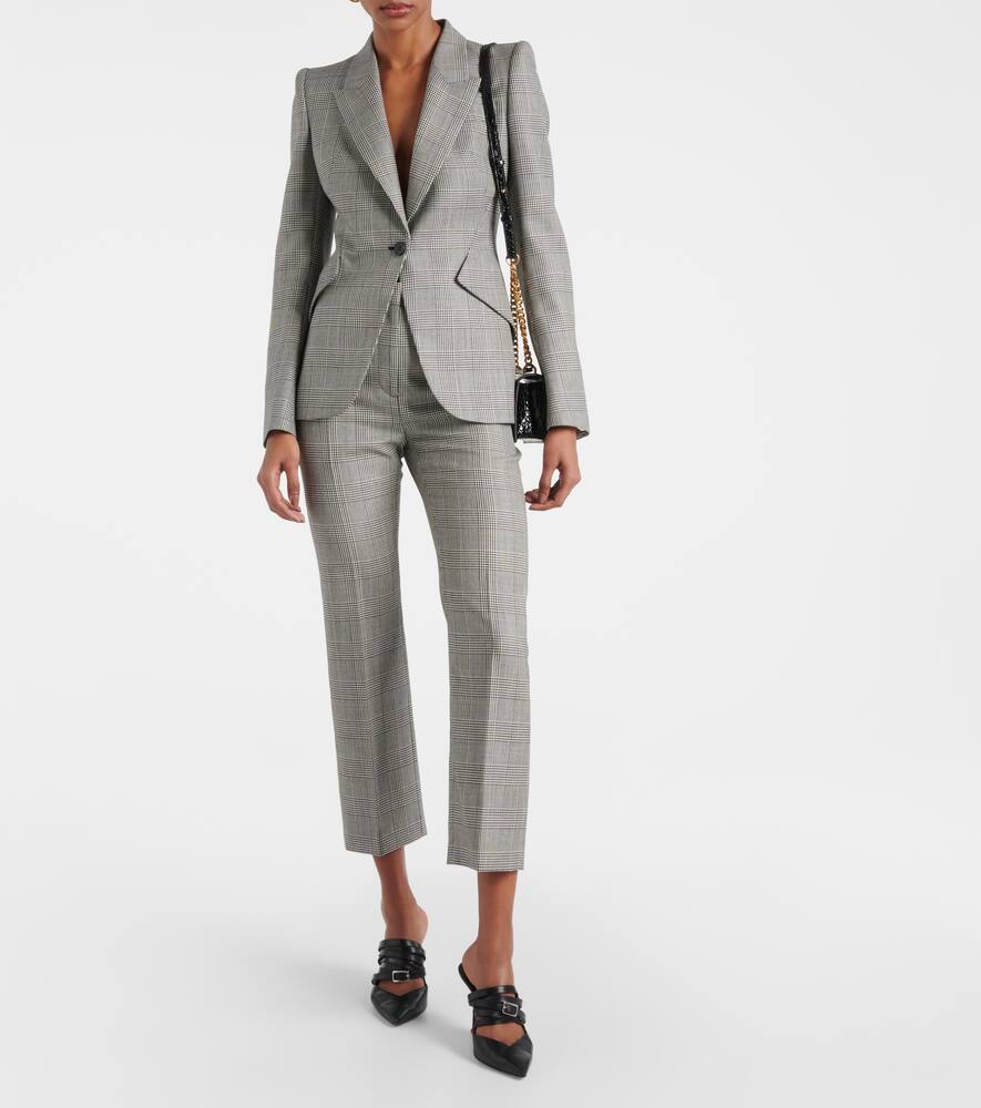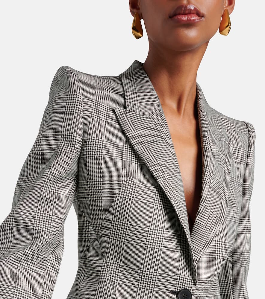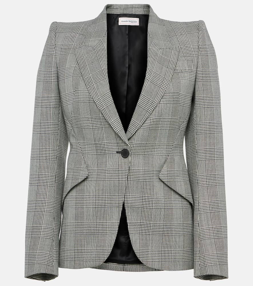 Material: 100% wool. Care instructions: dry clean. Made in Italy. Designer color name: Black/Ivory. Closure: single-breasted (one button). Cuff: four buttons. Pockets: flap pockets. Slim fit. Prince of Wales. Vent: double. Shop the latest Alexander McQueen Blazers.