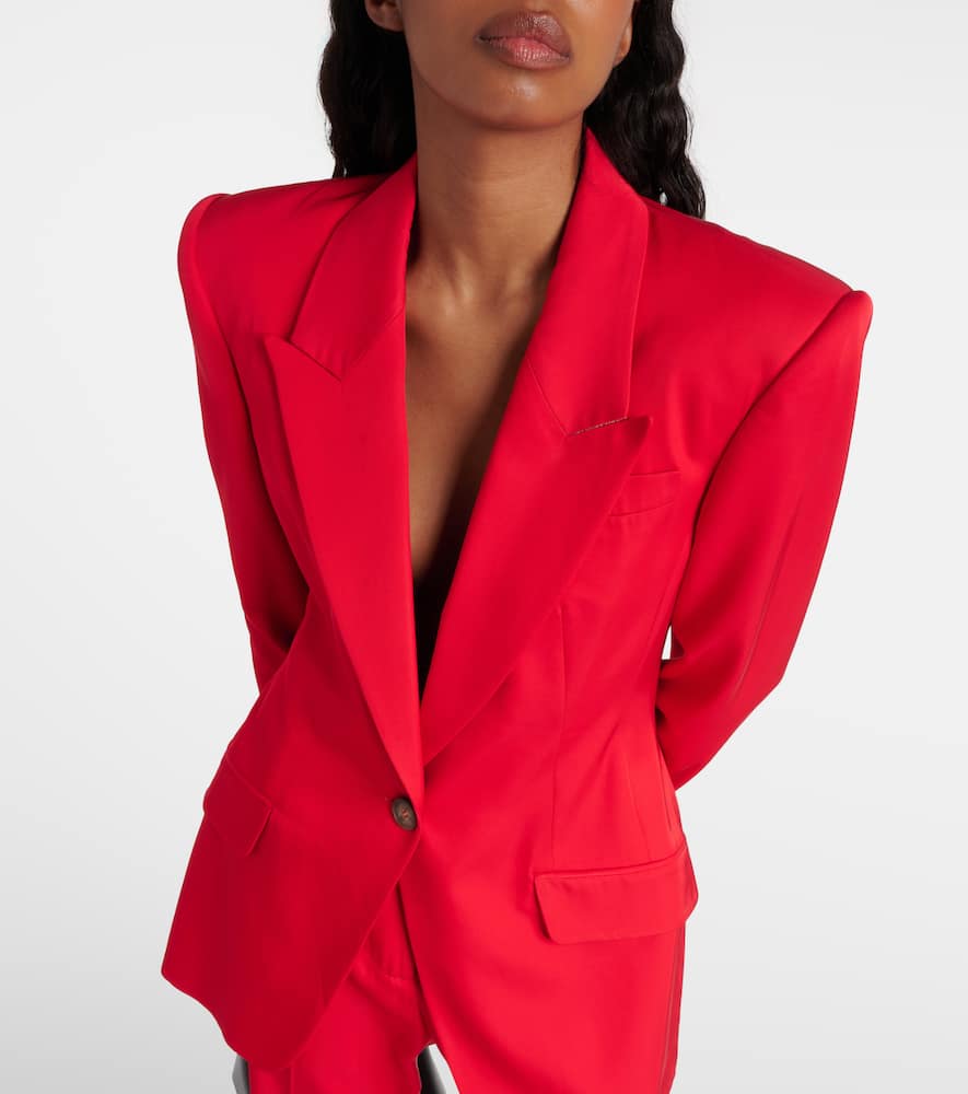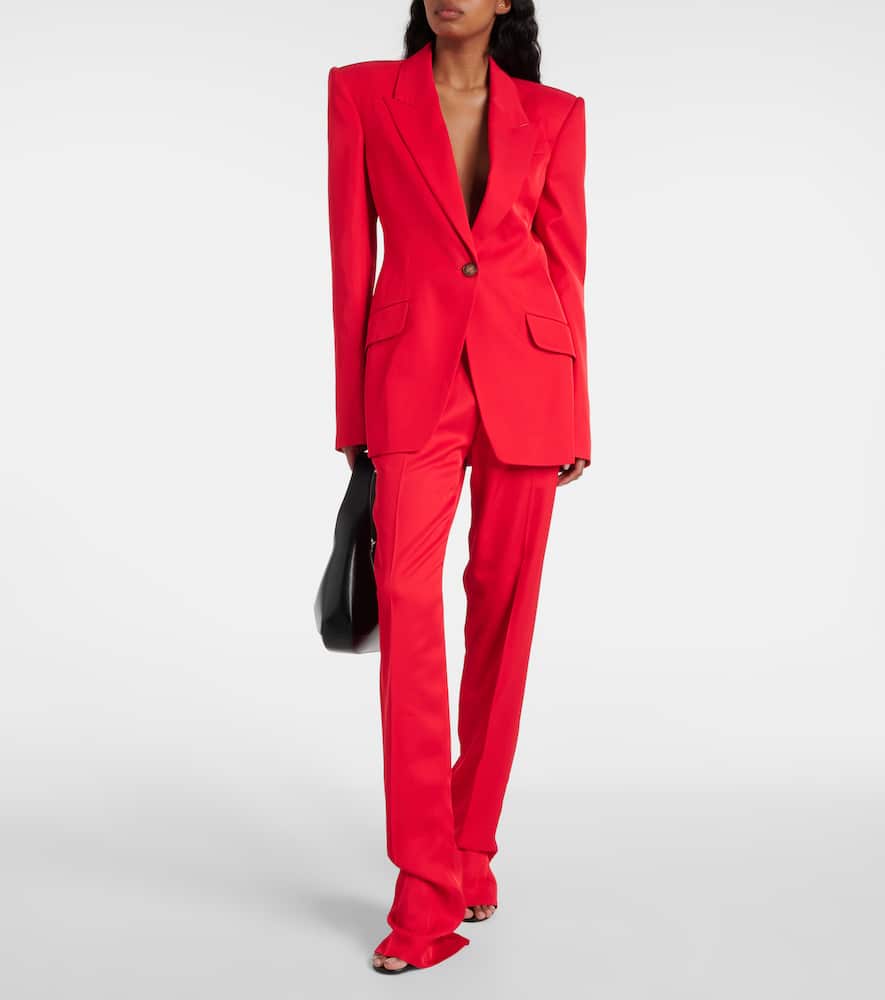 Material: 52% viscose, 48% acetate. Care instructions: dry clean. Made in Italy. Designer color name: Lust Red. Closure: single-breasted (one button). Pockets: flap pockets. Shop the latest Alexander McQueen Blazers.