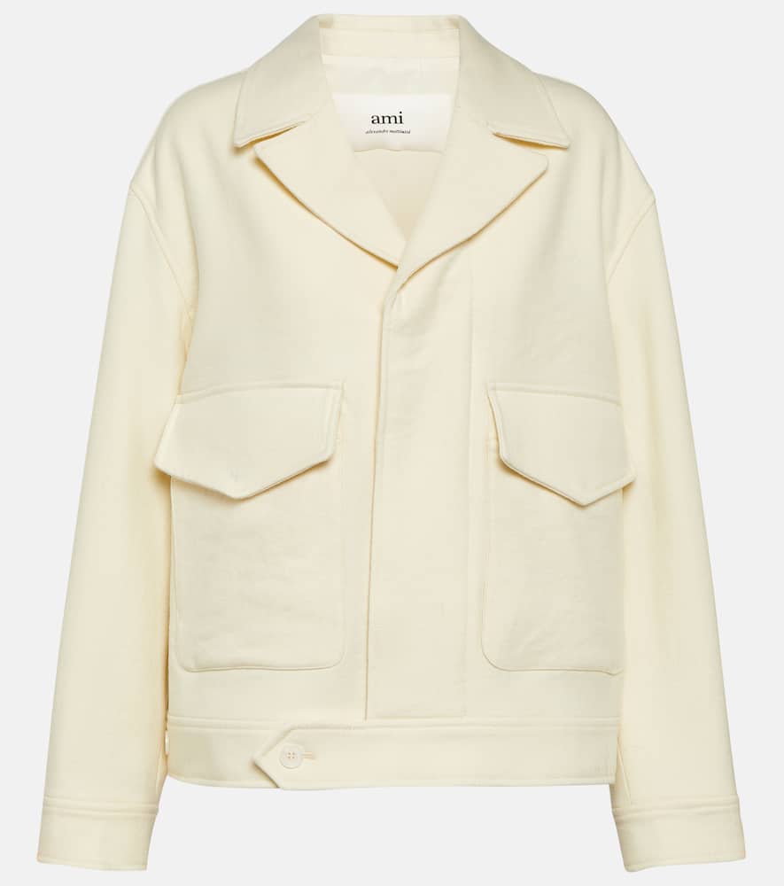 Material: 100% virgin wool. Care instructions: dry clean. Made in Romania. Designer color name: Ivory. Pocket lining: 100% cotton. Closure: buttoned front. Pockets: flap pockets. Buttoned cuffs. Shop the latest Ami Paris Wool Jackets.