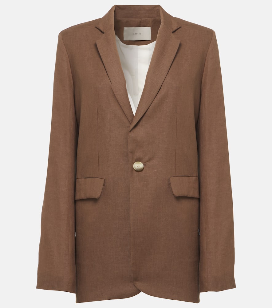 Material: 100% linen. Care instructions: dry clean. Made in Portugal. Designer color name: Sepia. Closure: single-breasted (one button). Pockets: flap pockets. Lining: 100% cotton. Shop the latest Asceno Blazers.