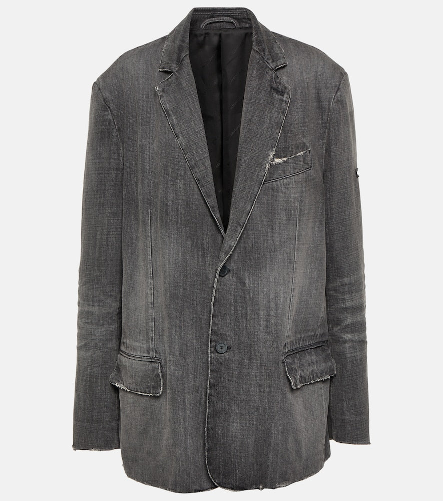 Material: 100% cotton. Care instructions: machine wash at 30 degrees. Made in Japan. Designer color name: Grid Wash Black. Lining: 100% cupro. Pocket lining: 100% cotton. Closure: buttoned front. Pockets: breast pocket, flap pockets, internal pocket. Shop the latest Balenciaga Blazers.