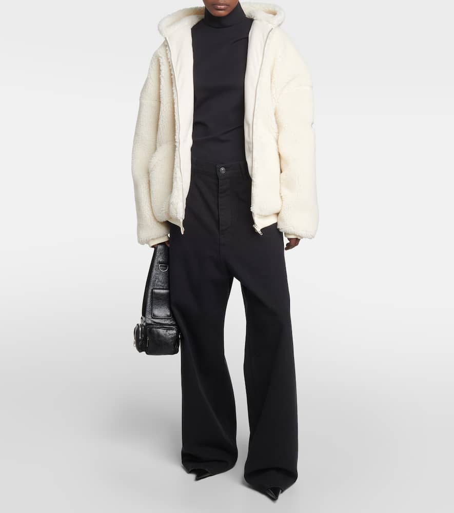 Material: 100% polyester. Care instructions: do not wash. Made in Portugal. Designer color name: Ivory. Closure: two-way zipped front. Elasticated waistband. Lining: 100% polyester. Material II: 100% cotton. Pockets: side slit pockets. Shop the latest Balenciaga Shearling Jackets.