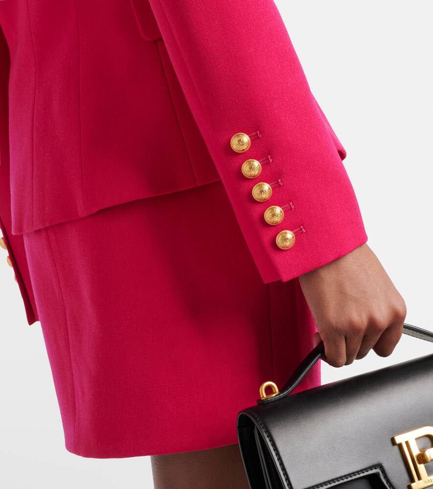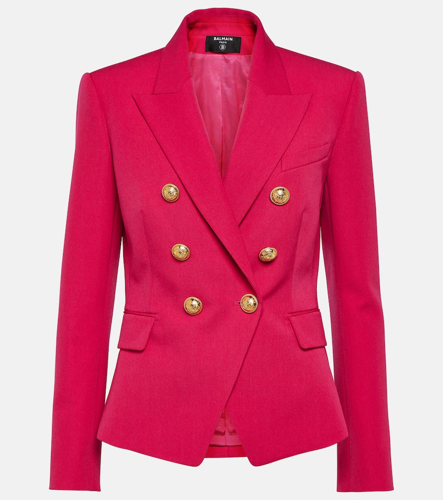 Material: 100% virgin wool. Care instructions: dry clean. Made in Slovakia. Designer color name: Fuchsia. Lining: 52% viscose, 48% cotton. Closure: double-breasted (six buttons). Pockets: flap pockets. Shop the latest womens Balmain Blazers.