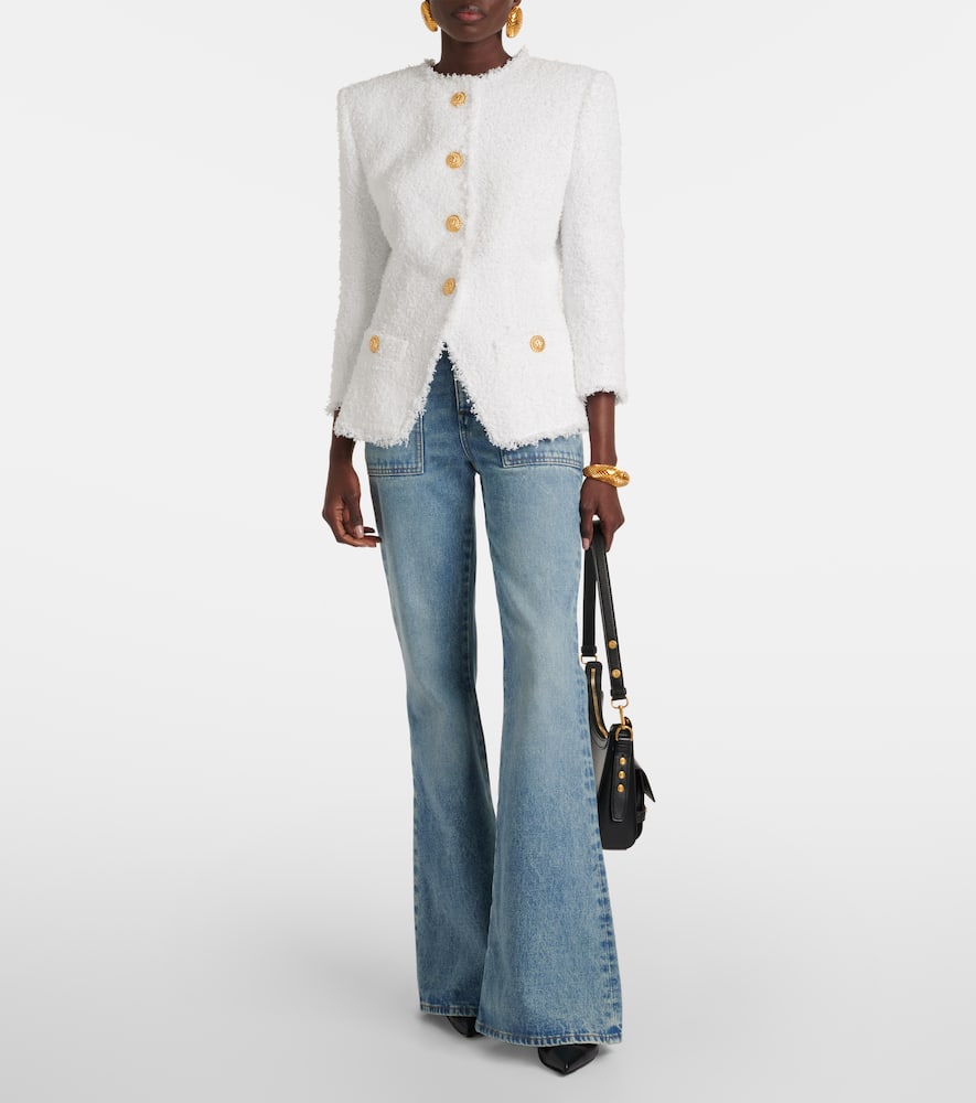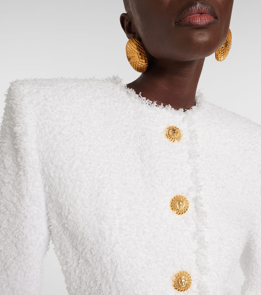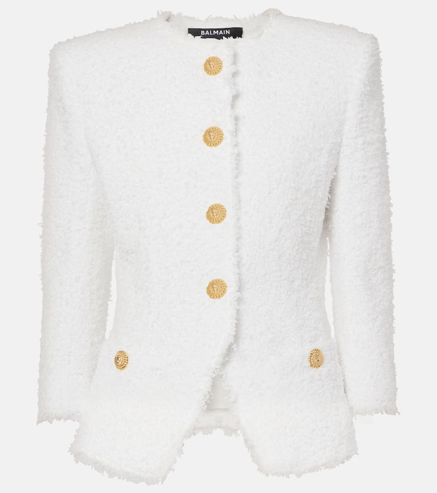 Material: 100% polyamide. Care instructions: specialist clean. Made in Poland. Designer color name: Blanc. Lining: 52% viscose, 48% cotton. Closure: snap-buttoned fastenings. Pockets: patch pockets. Shop the latest Balmain Tweed Jackets.