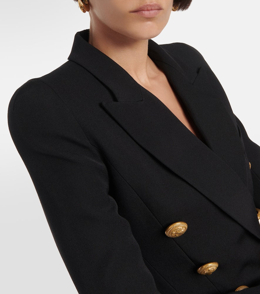 Pocket lining: 52% viscose, 48% cotton. Made in Slovakia. Sleeve lining: 52% viscose, 48% cotton. Designer color name: 0Pa Noir. Material: 100% virgin wool. Pockets: welt pocket. Lining: 52% viscose, 48% cotton. Closure: double-breasted buttoned front. Care instructions: dry clean. Shoulder pads. Shop the latest womens Balmain Blazers.