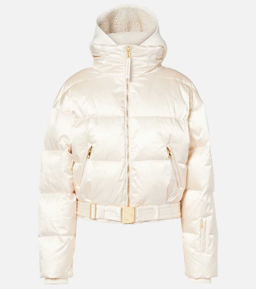 Material: 100% polyamide (recycled). Care instructions: specialist clean. Made in the Czech Republic . Designer color name: 133_White. Material II: 100% polyurethane. Lining: 64% polyester (recycled), 36% polyester. Filling: 90% down, 10% goose feathers. Closure: partially zipped. Attached belt. Pockets: zipped pockets. Shop the latest Bogner Ski Jackets.