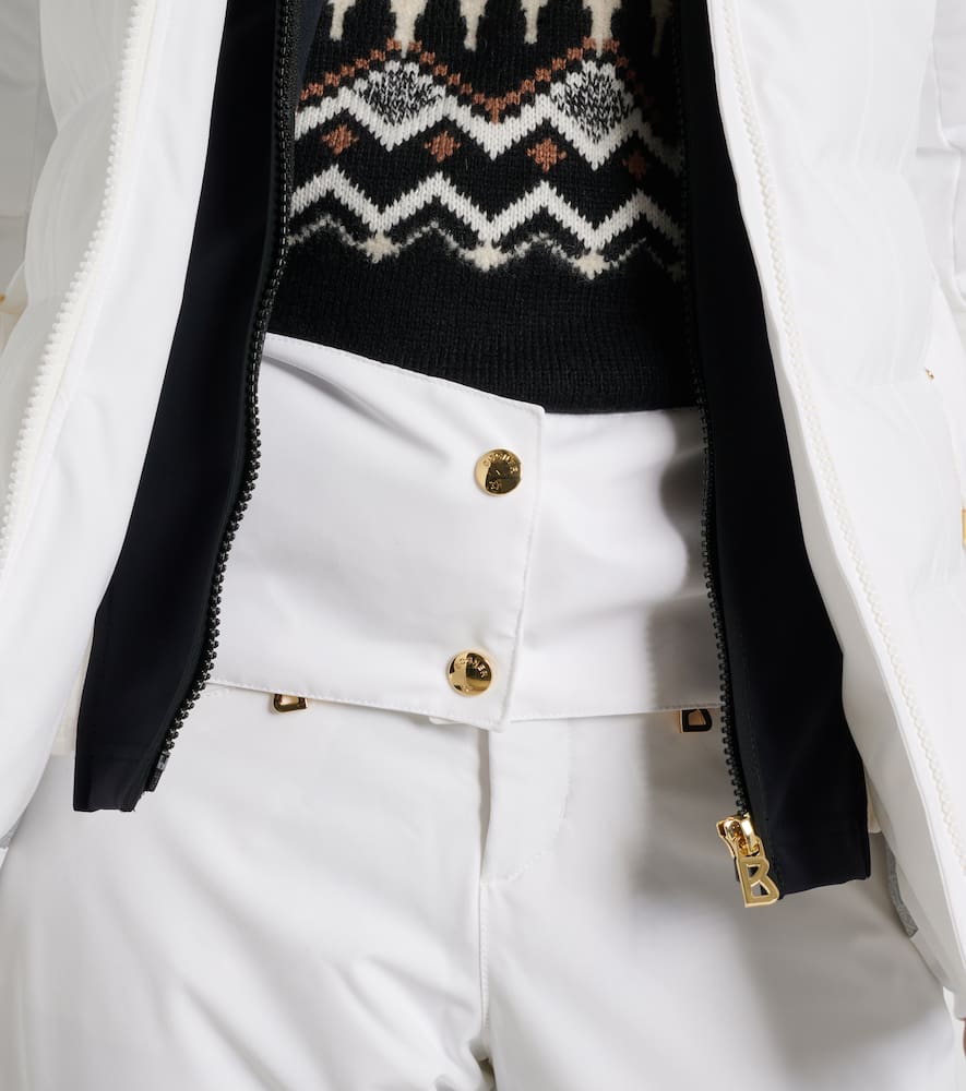 Material: 88% polyester, 12% elastane. Care instructions: machine wash at 30 degrees. Made in Vietnam. Designer color name: 753. Lining: 100% polyester. Filling: 100% polyester. Closure: zipped front, buckle fastening. Pockets: zipped pockets. Hood. Shop the latest Bogner Ski Jackets.