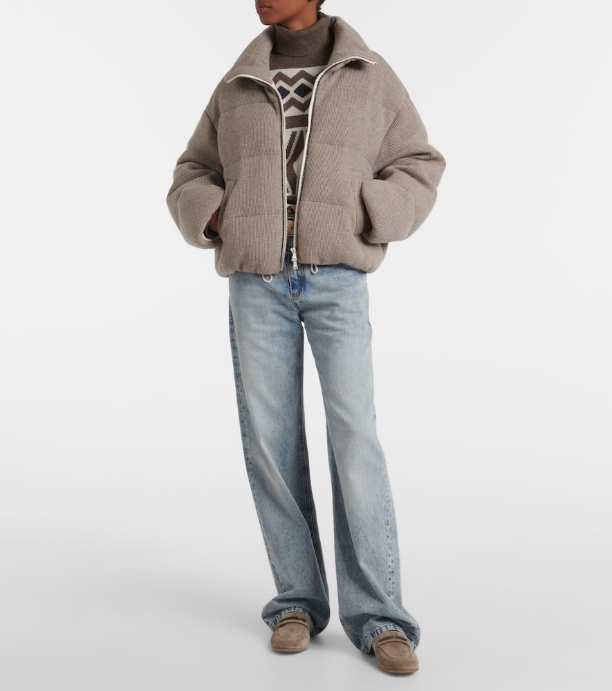 Material: 100% cashmere. Care instructions: dry clean. Made in Italy. Designer color name: Smokey Taupe. Closure: two-way zipped front. Pockets: side slit pockets. Comes with garment bag. Lining: 100% polyamide. Filling: 90% down, 10% feathers. Contains non-textile parts of animal origin. Elasticated drawstring waist. Shop the latest Brunello Cucinelli Puffer & Down Jackets.