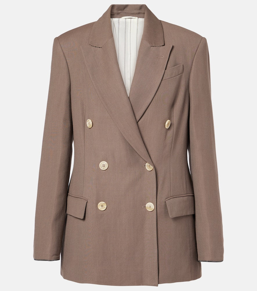 Material: 73% viscose, 27% linen. Care instructions: dry clean. Made in Italy. Designer color name: Cacao. Lining: 57% viscose, 43% polyester. Closure: double-breasted (six buttons). Pockets: flap pockets. Cuff: four buttons. Fully lined. Shop the latest Brunello Cucinelli Blazers.